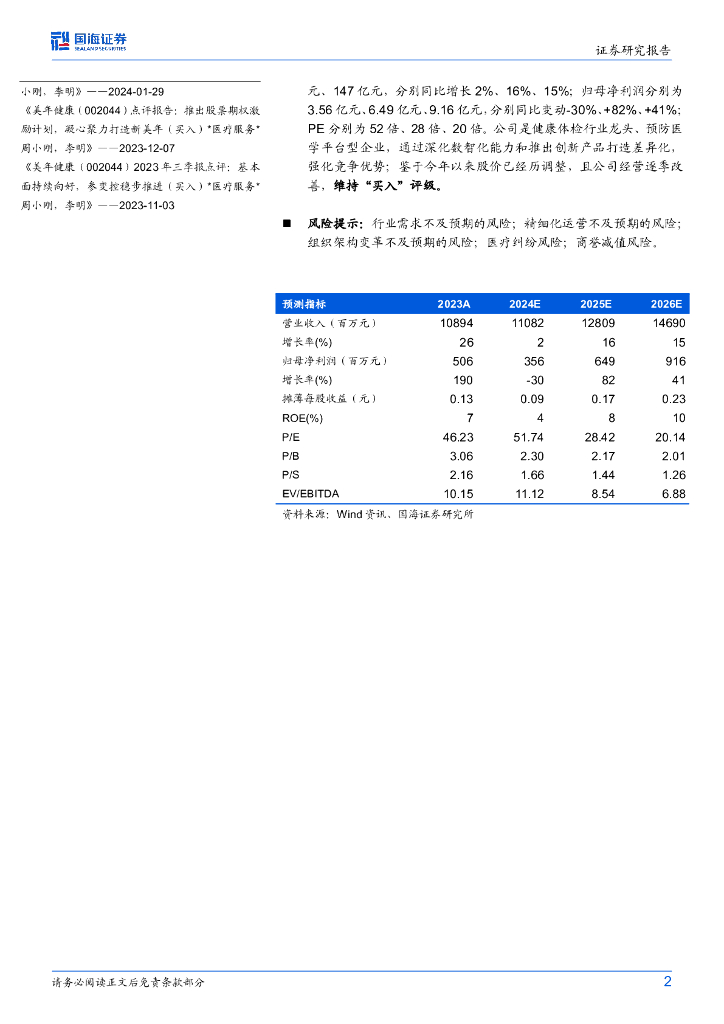 国海证券:美年健康(002044)-公司动态研究:第三季度营收利润双增长,发布国内首个AI数智健管师“健康小美”.pdf