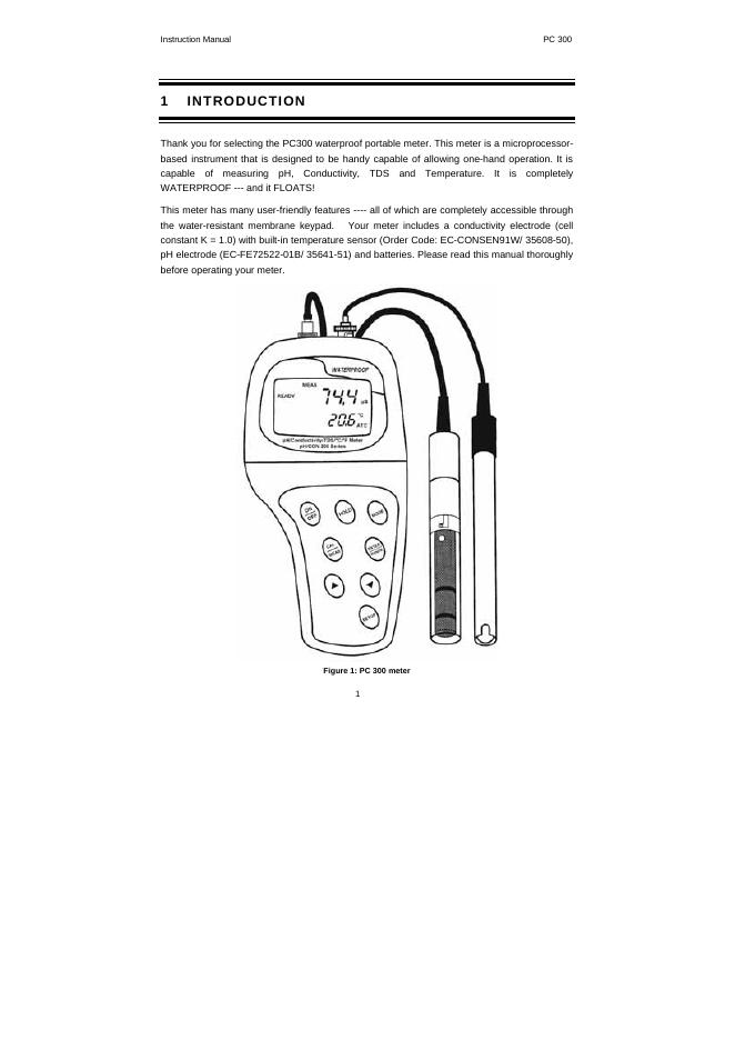 Eutech Instruments PC 300 Waterproof Hand-held pH/Conductivity/TDS/Temperature Meter Instruction Manual.pdf