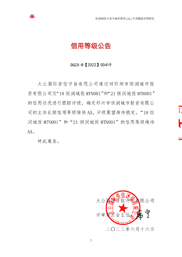 大公:邳州市恒润城市投资有限公司主体与相关债项2022年度跟踪评级报告.pdf