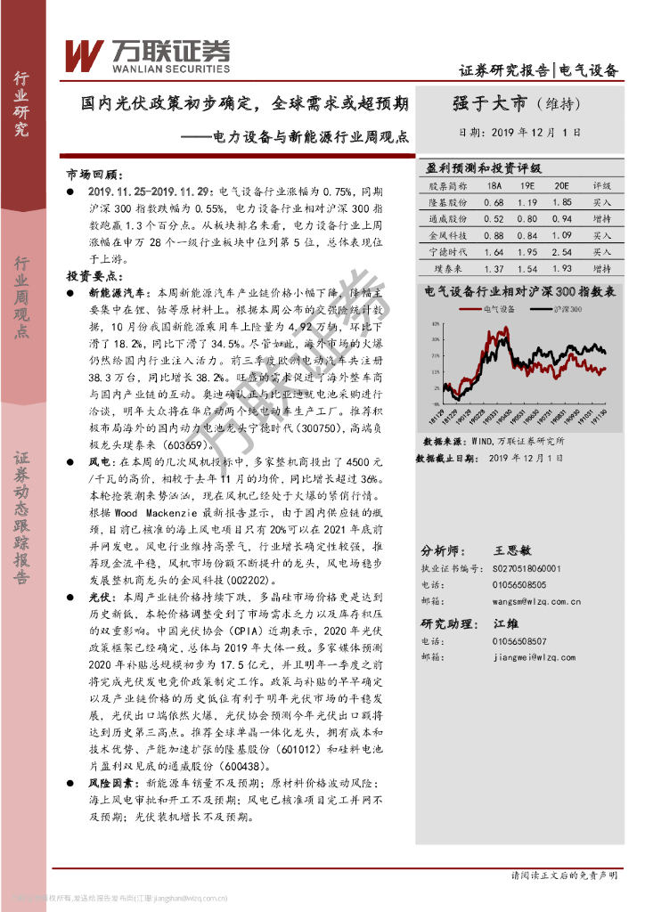 万联证券:电力设备与新能源行业周观点:国内光伏政策初步确定,全球需求或超预期.pdf