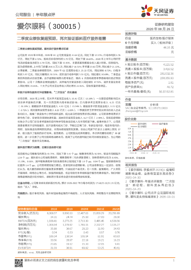 天风证券:爱尔眼科(300015)-二季度业绩恢复超预期,再次验证眼科医疗服务刚需.pdf