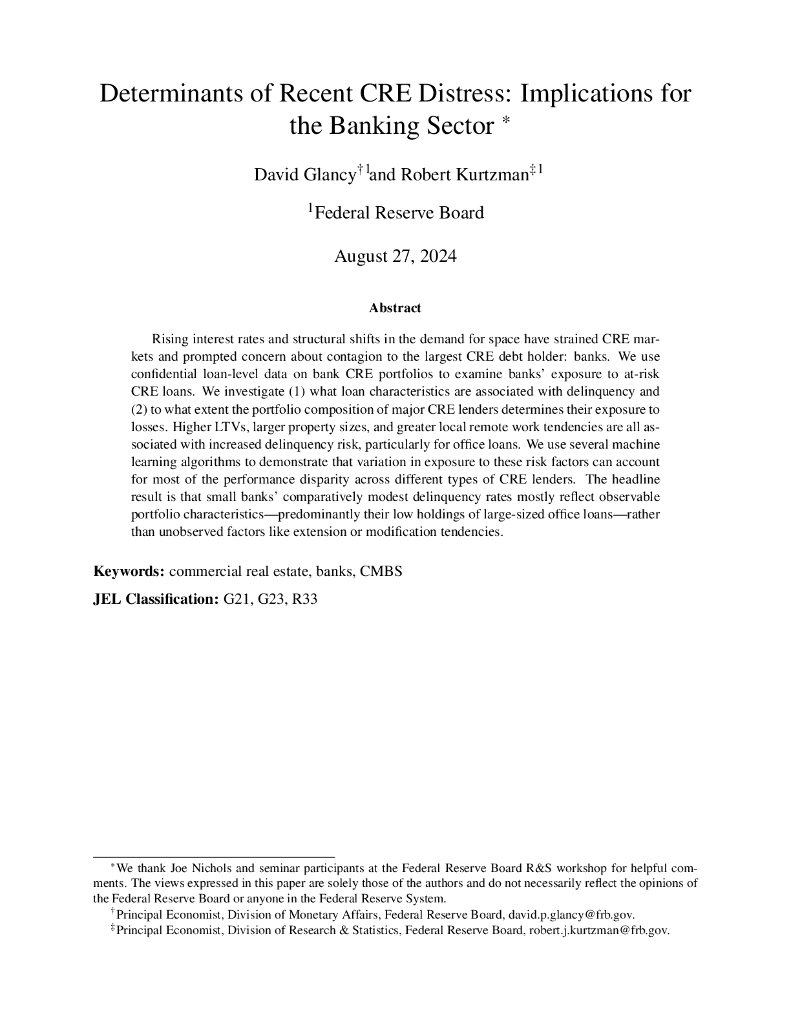 美联储:近期CRE困境的决定因素:对银行业的影响(英文版).pdf