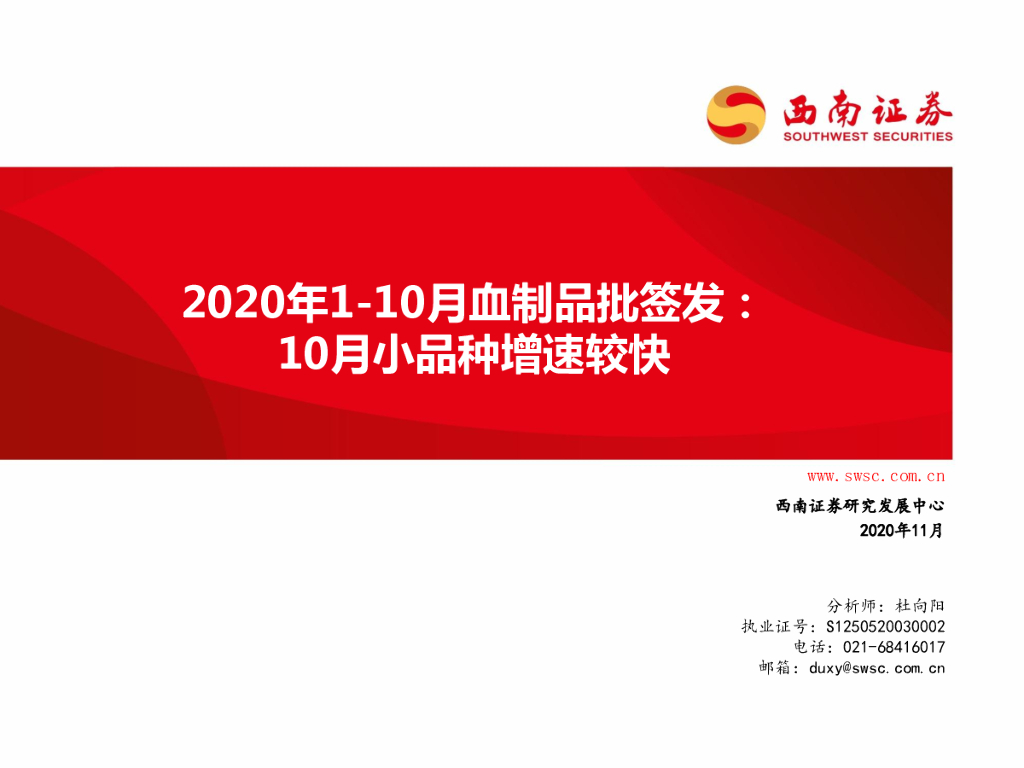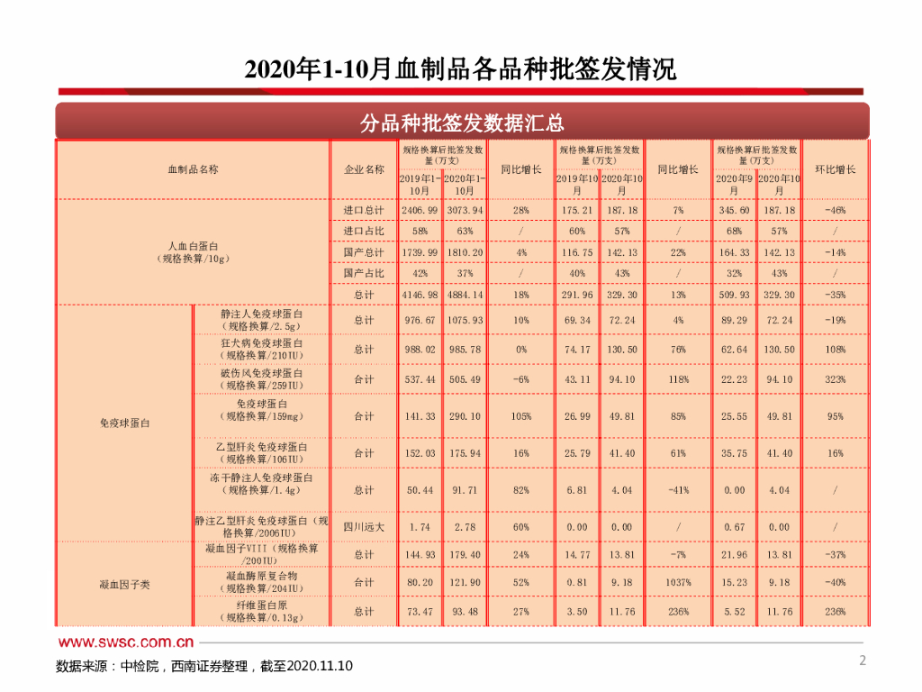 西南证券:2020年1-10月血制品批签发:10月小品种增速较快.pdf