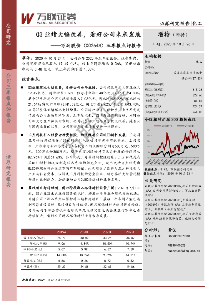 万联证券:万润股份(002643)-三季报点评报告:Q3业绩大幅改善,看好公司未来发展.pdf
