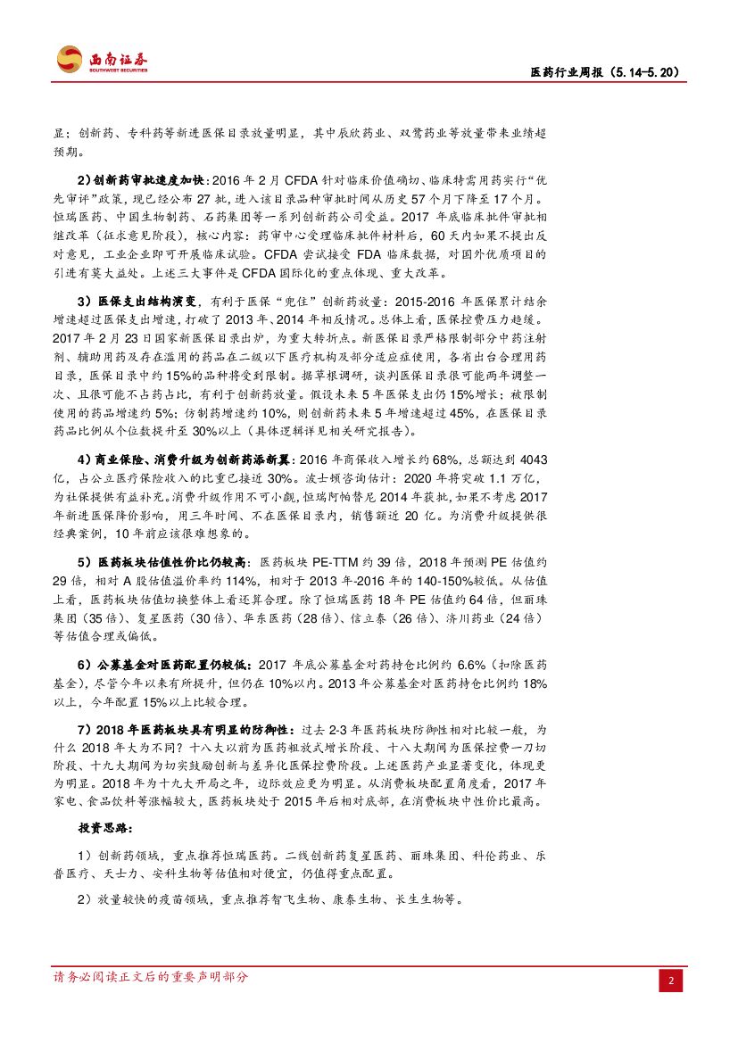 西南证券:医药行业周报:持续看好医药板块,推荐疫苗板块及蓝帆医疗.pdf