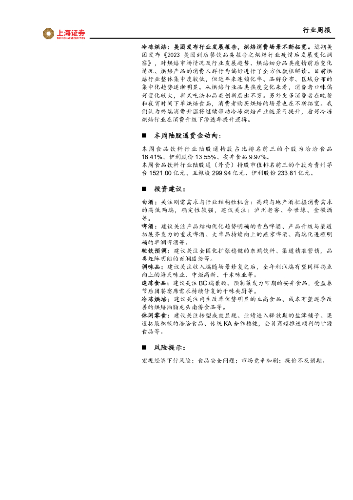 上海证券:食品饮料行业周报:茅台特别分红提振信心,关注行业需求复苏.pdf