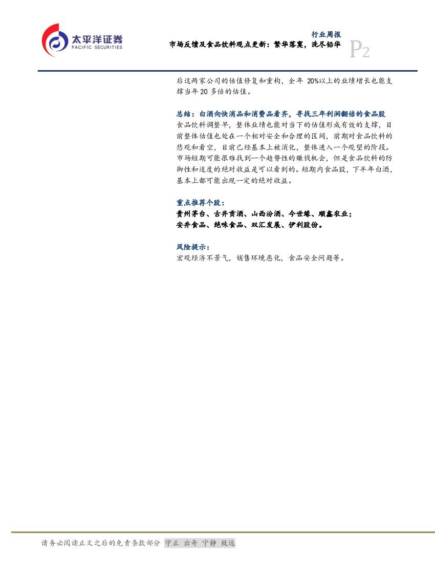 太平洋证券:食品、饮料与烟草行业周报:市场反馈及食品饮料观点更新:繁华落寞,洗尽铅华.pdf