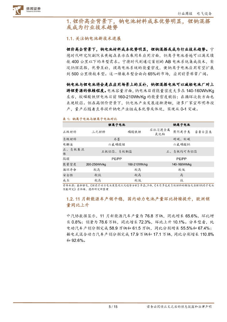 德邦证券:电气设备及新能源行业周报:11月新能源车销量平稳,关注钠电池新技术.pdf