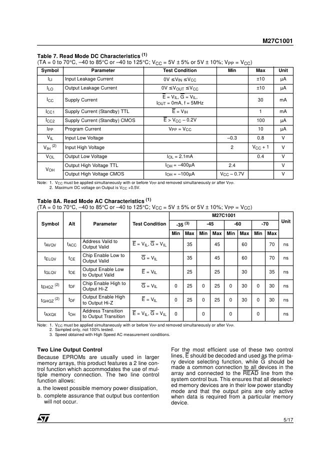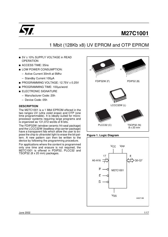 STMICROELECTRONICS M27C1001 数据手册.pdf