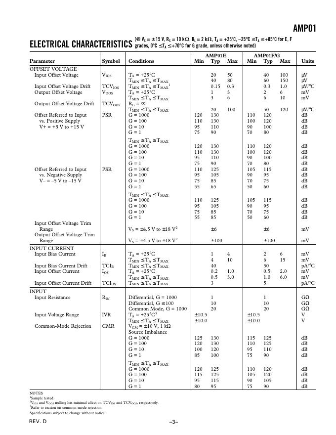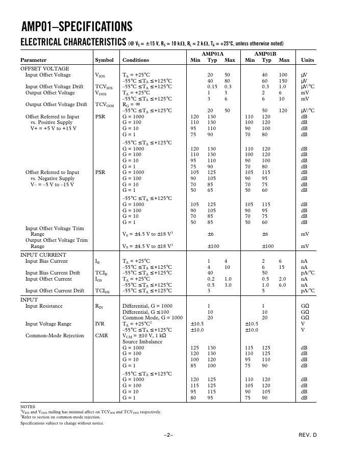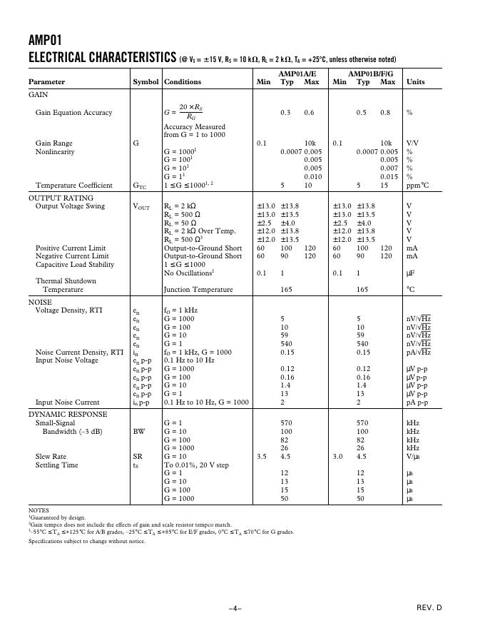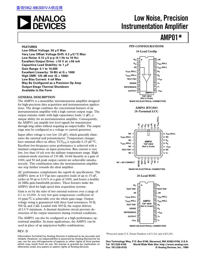 ANALOG DEVICES AMP01* Low Noise, Precision Instrumentation Amplifier 数据手册.pdf
