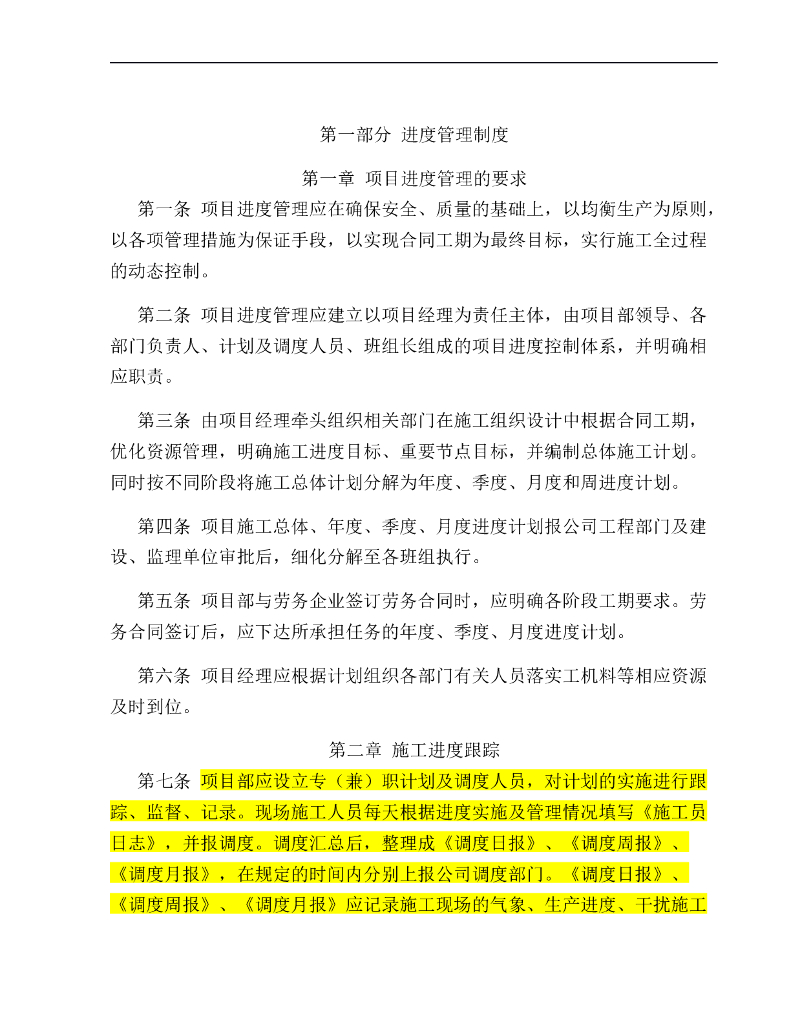 项目部进度管理制度手册.doc