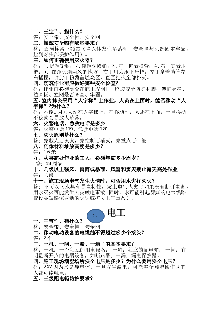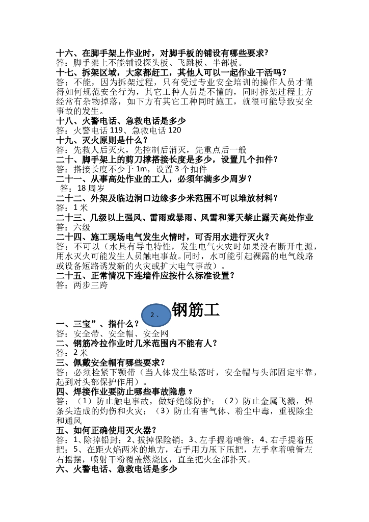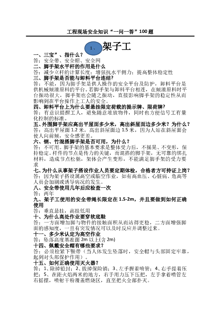工程现场安全知识“一问一答”100题.doc