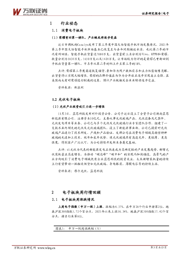 万联证券:电子行业周观点:荣耀重回第一梯队,产业链或将逐步受益.pdf
