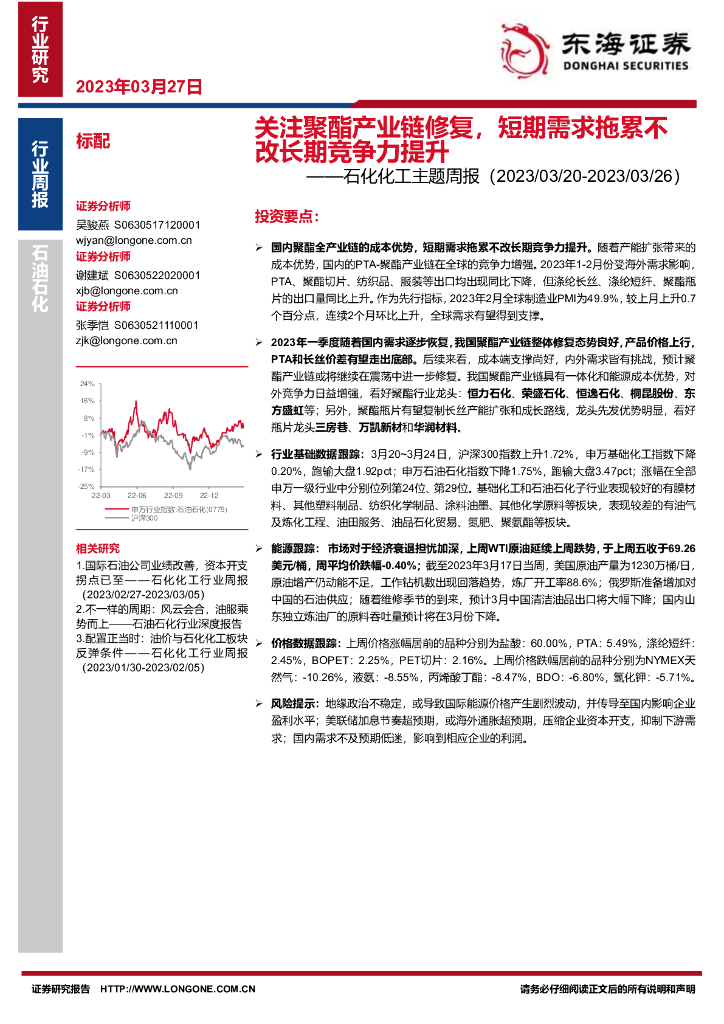东海证券:石化化工主题周报:关注聚酯产业链修复,短期需求拖累不改长期竞争力提升.pdf