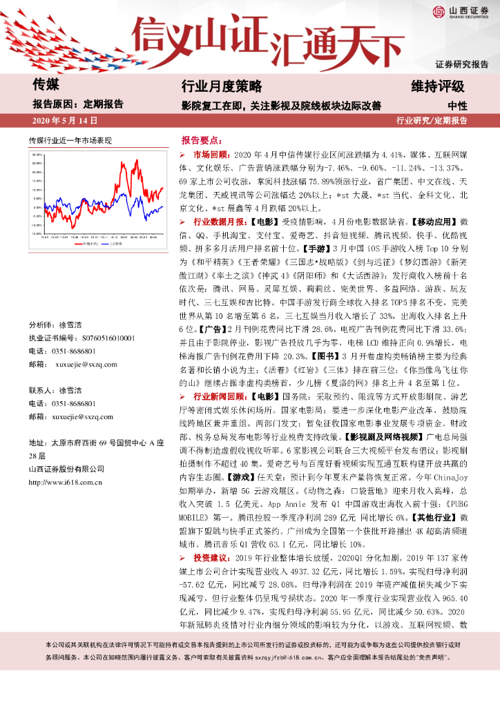 山西证券:传媒行业月度策略:影院复工在即,关注影视及院线板块边际改善.pdf