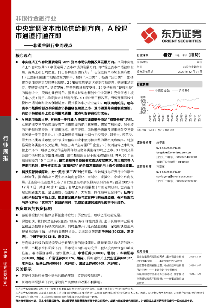 东方证券:非银金融行业周观点:中央定调资本市场供给侧方向,A股退市通道打通在即.pdf