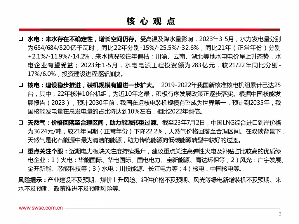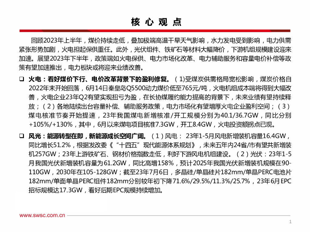 西南证券:公用事业行业2023年中期投资策略:火电价值持续修复,组件降价利好绿电.pdf