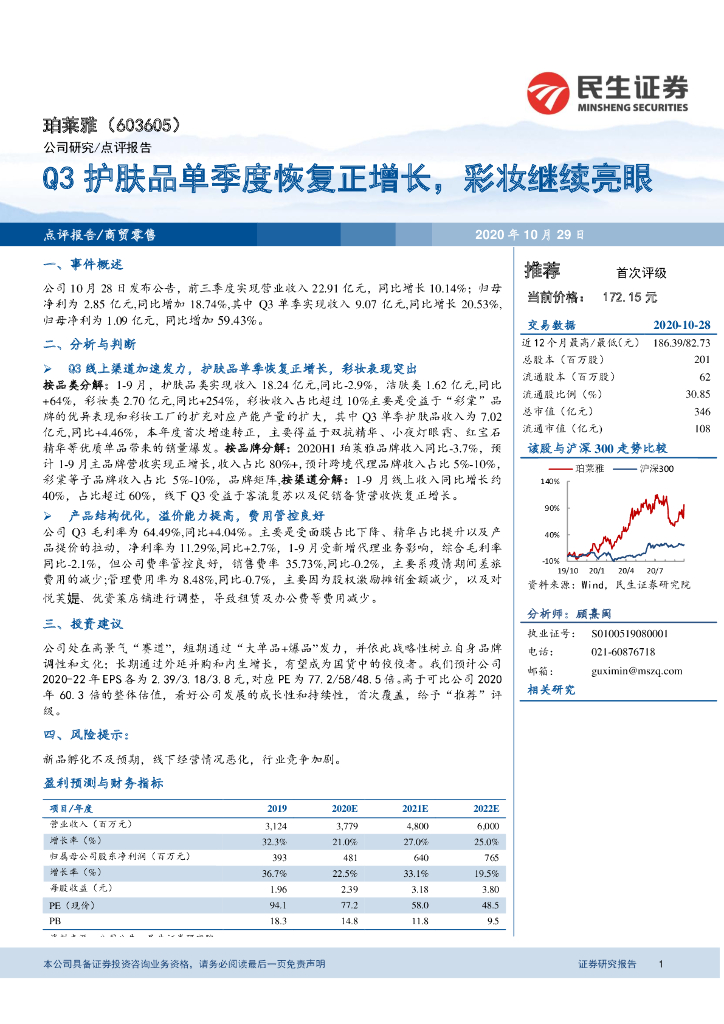 民生证券:珀莱雅(603605)-Q3护肤品单季度恢复正增长,彩妆继续亮眼.pdf