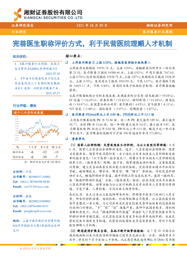 湘财证券:医疗服务行业周报:完善医生职称评价方式,利于民营医院理顺人才机制.pdf