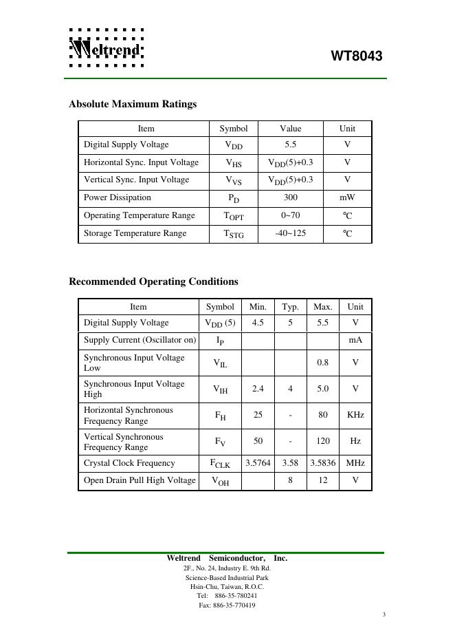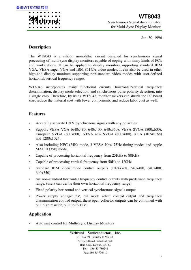 Weltrend Semiconductor WT8043 数据手册.pdf