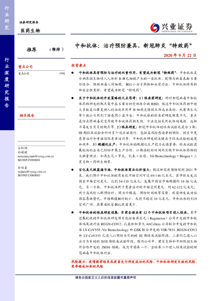 兴业证券:中和抗体:治疗预防兼具,新冠肺炎“特效药”.pdf