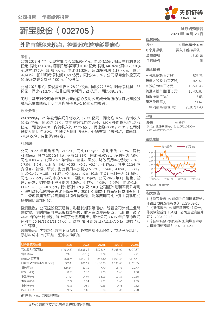 天风证券:新宝股份(002705)-外销有望迎来拐点,控股股东增持彰显信心.pdf