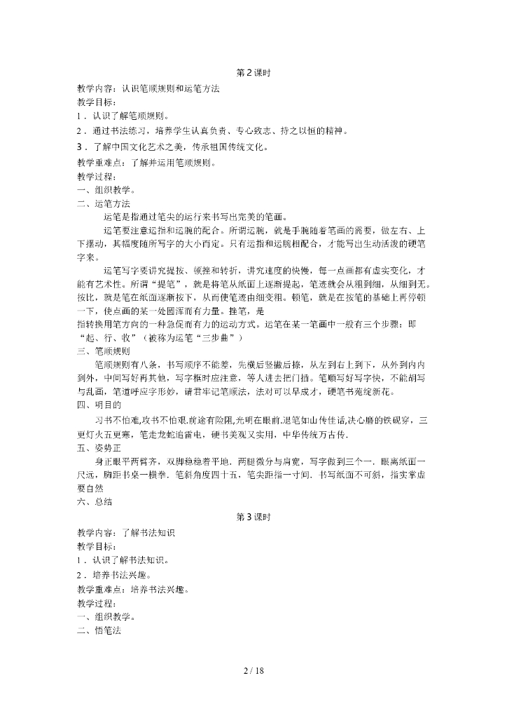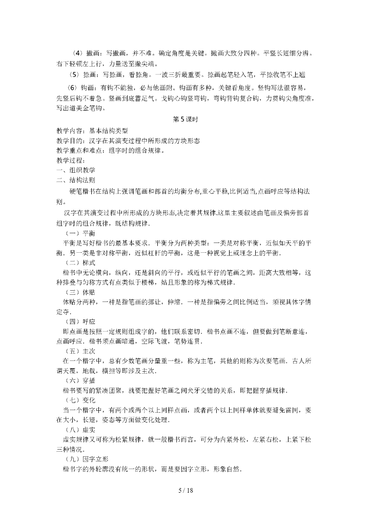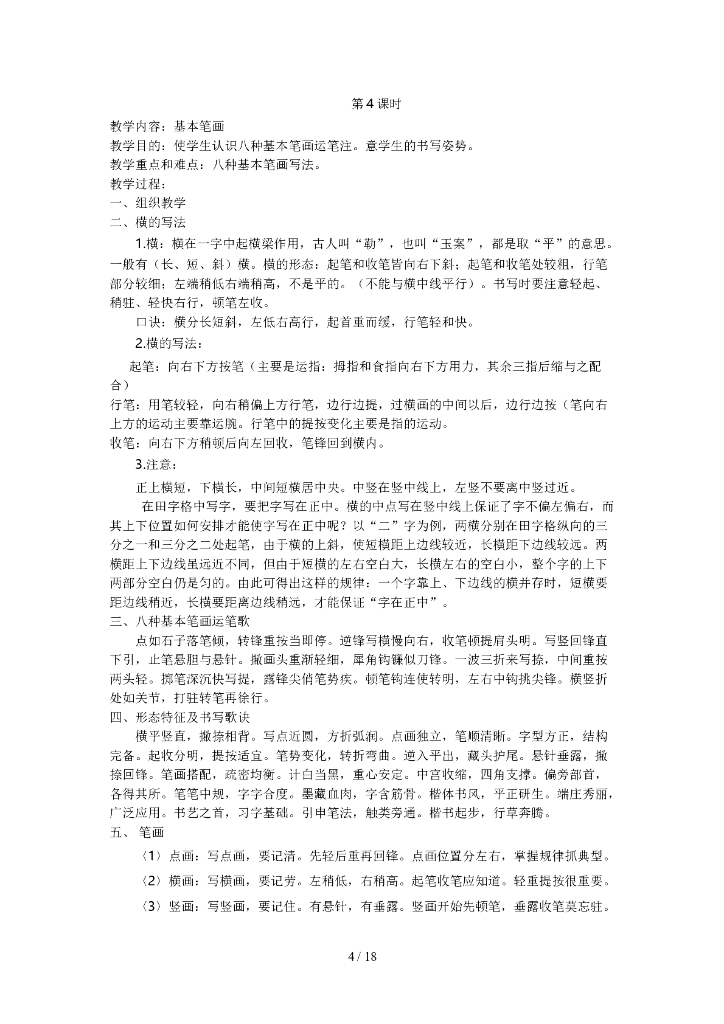 四年级硬笔书法上册优秀教案.doc