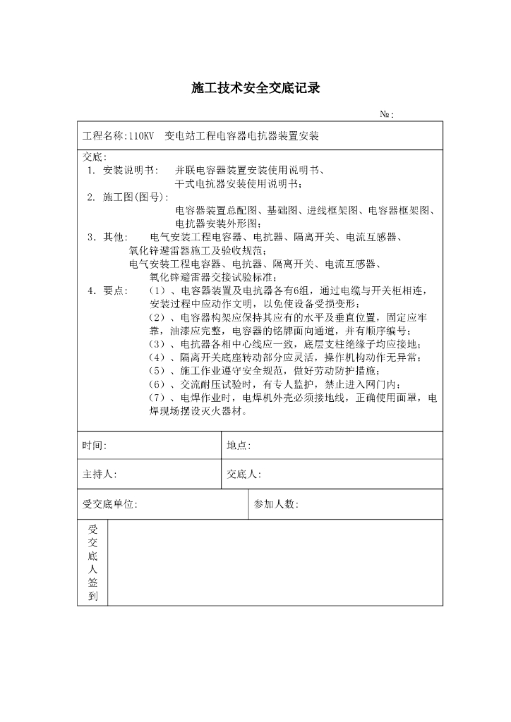 电容器电抗器装置安装施工技术交底.doc
