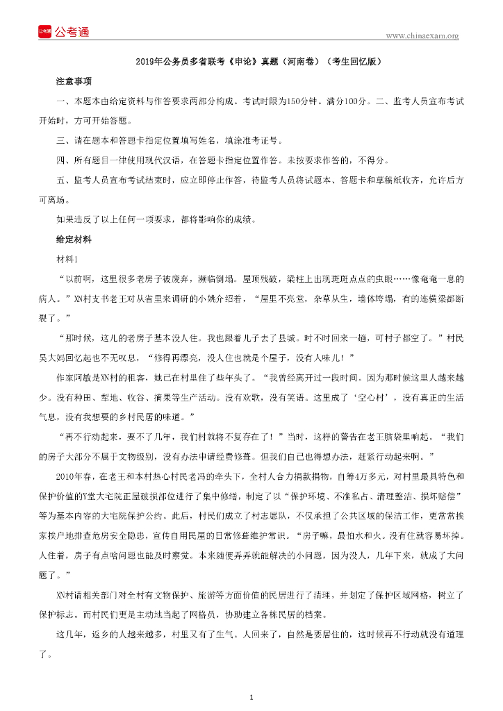 2019年河南公务员考试申论真题及答案.pdf