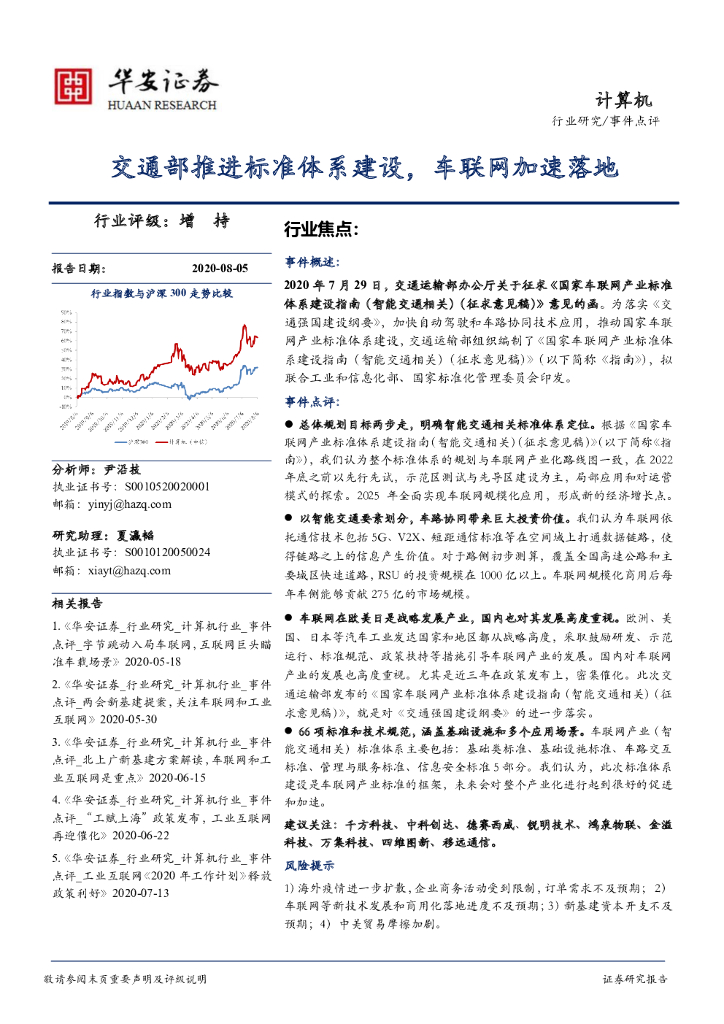 华安证券:计算机:交通部推进标准体系建设,车联网加速落地.pdf