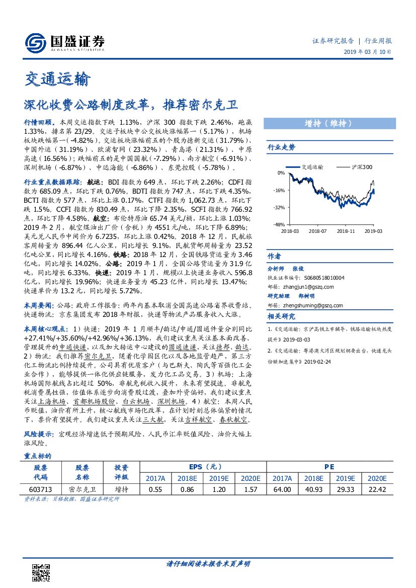 国盛证券:交通运输行业周报:深化收费公路制度改革,推荐密尔克卫.pdf