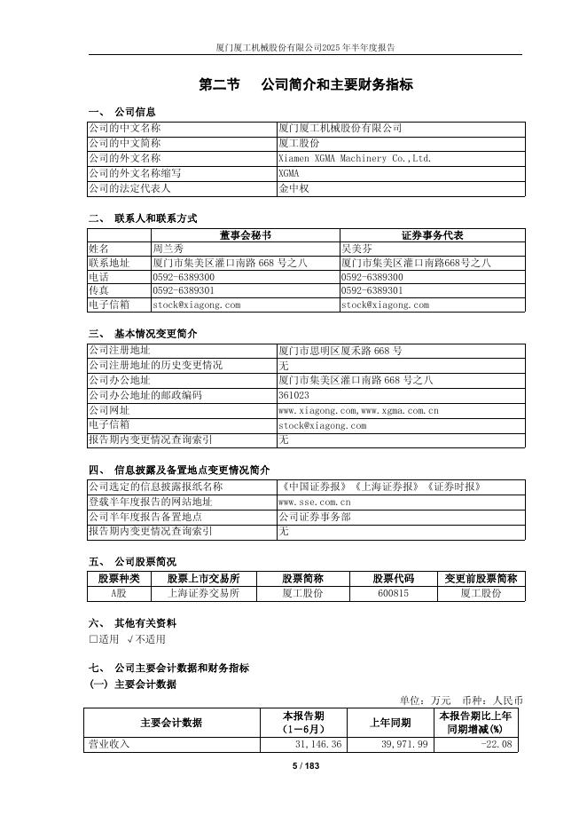 600815-厦工股份:厦工股份2025年半年度报告.pdf