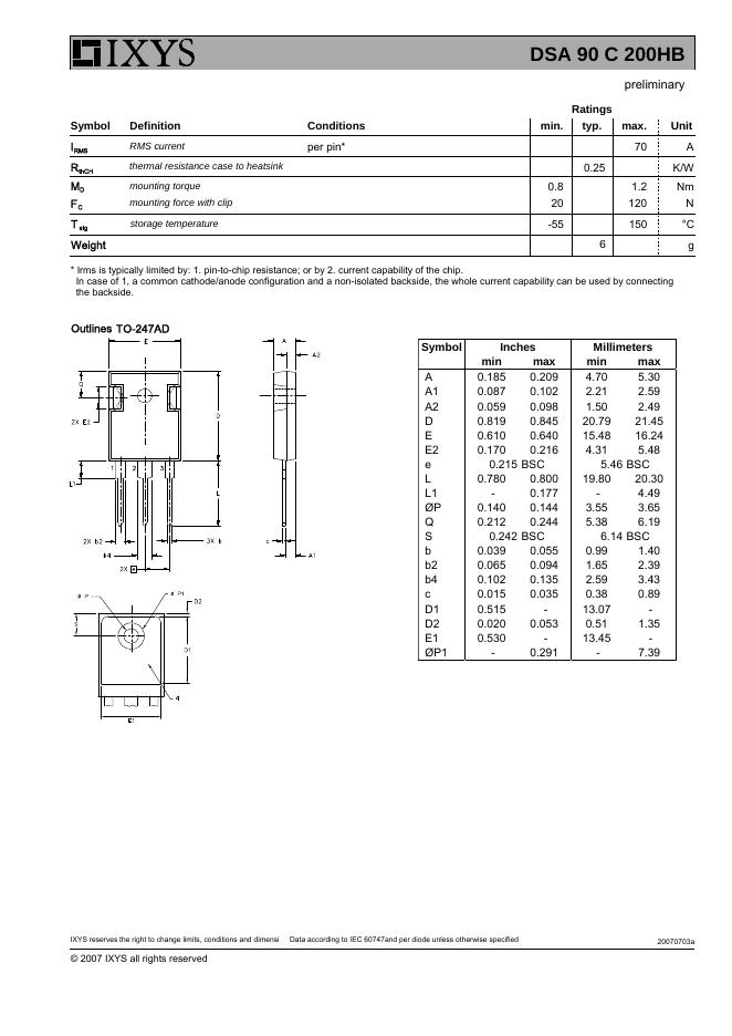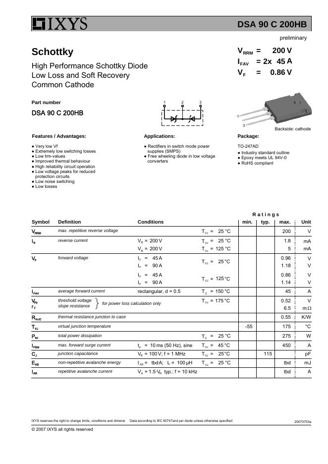 IXYS SEMICONDUCTORDSA 90 C 200HB 数据手册.pdf