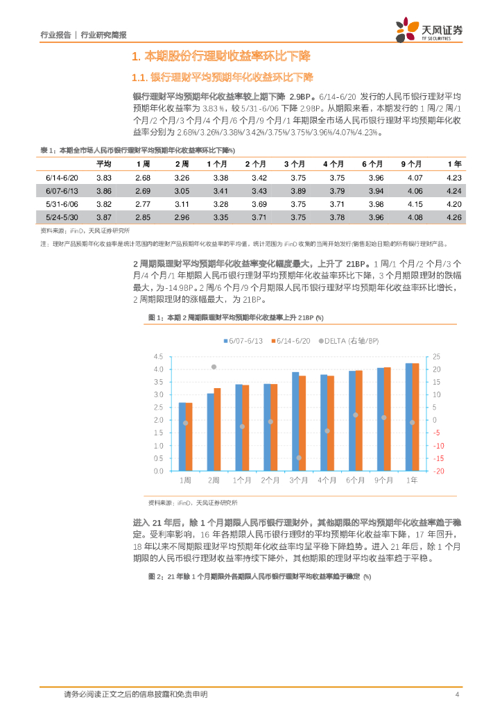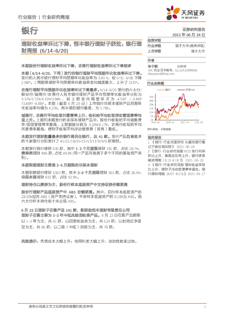 天风证券:银行业理财周报:理财收益率环比下降,恒丰银行理财子获批.pdf