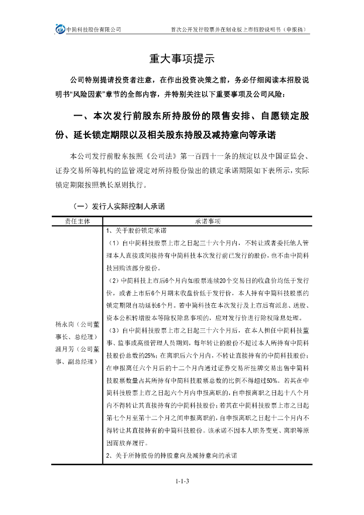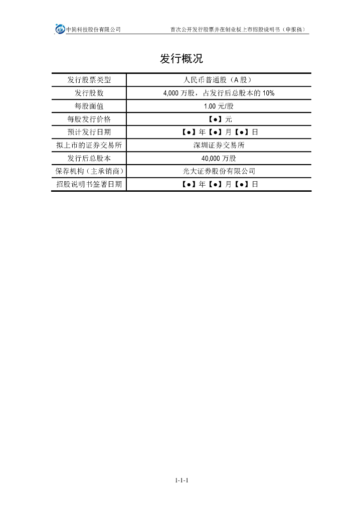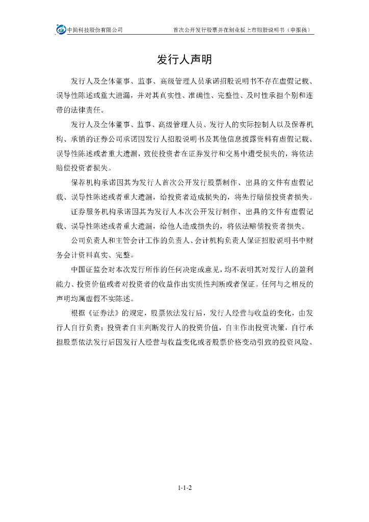 中简科技股份有限公司深交所创业板IPO上市招股说明书.pdf