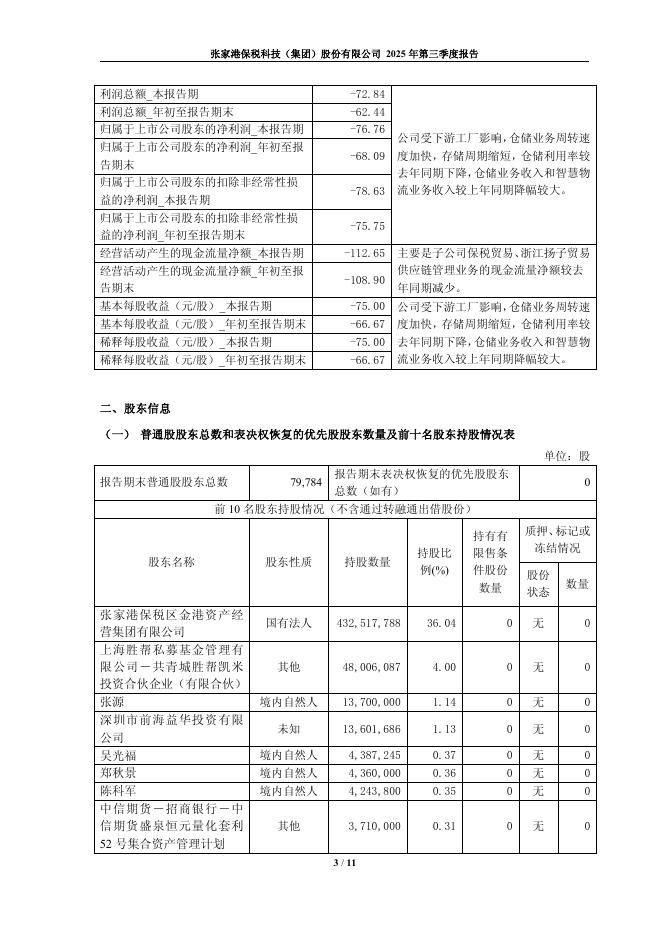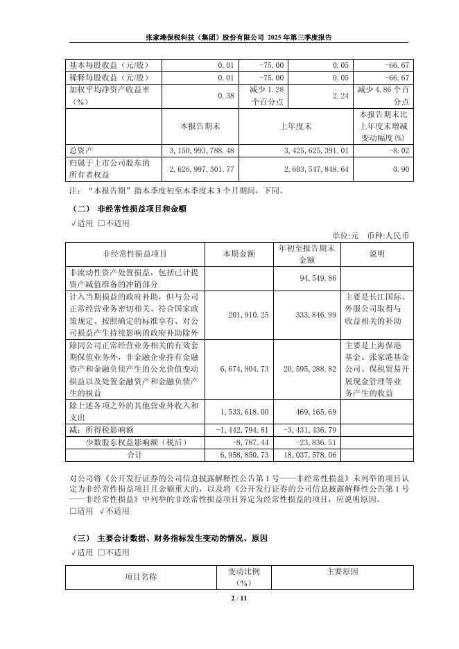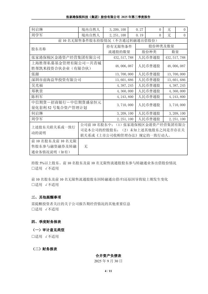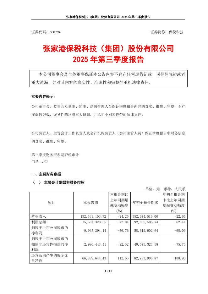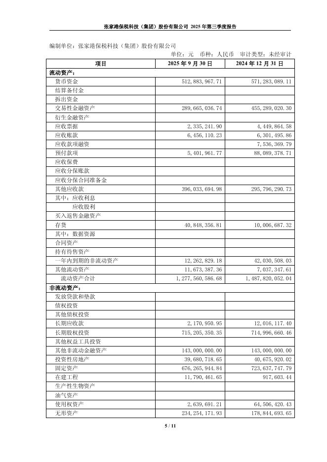 600794-保税科技:张家港保税科技(集团)股份有限公司2025年第三季度报告.pdf