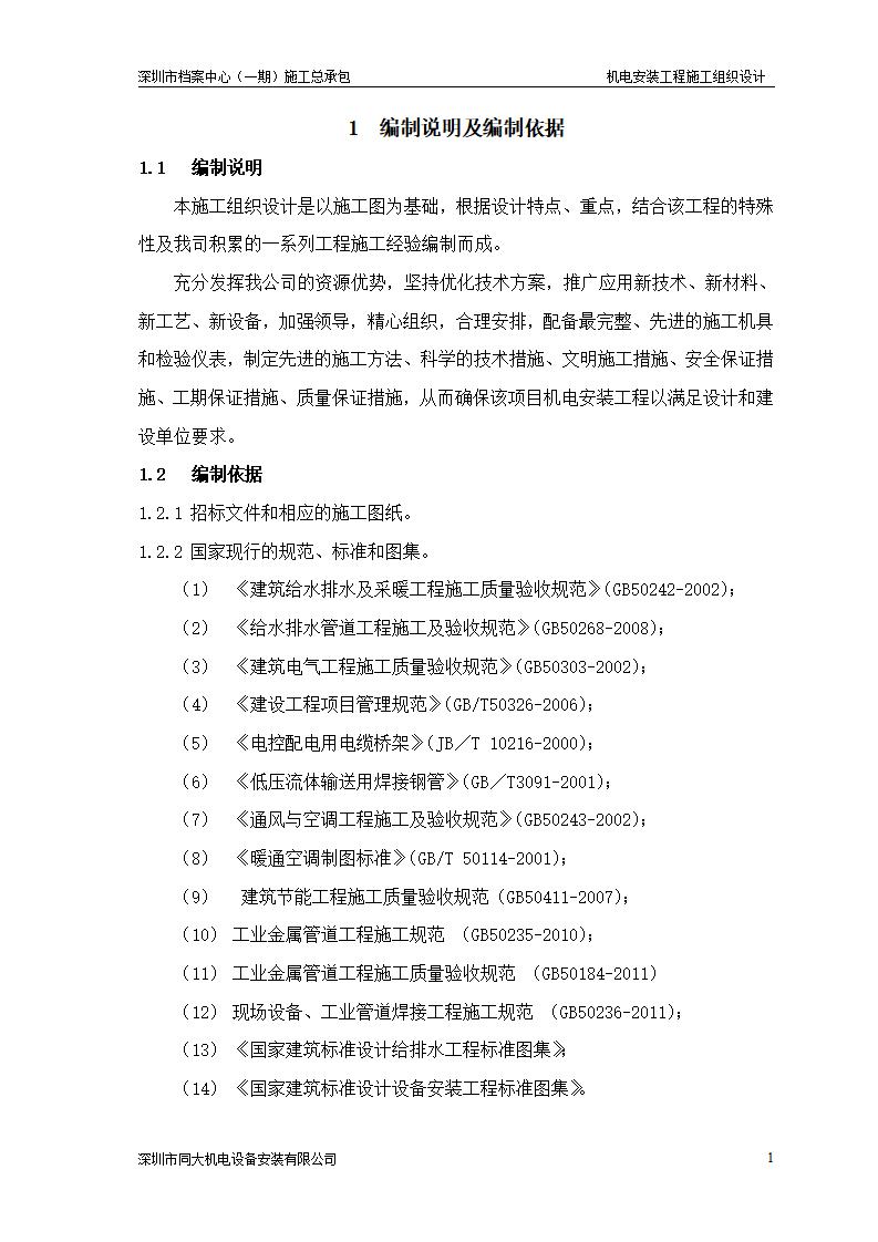 深圳市档案中心(一期)施工总承包办公建筑机电安装工程施工组织设计111页.doc
