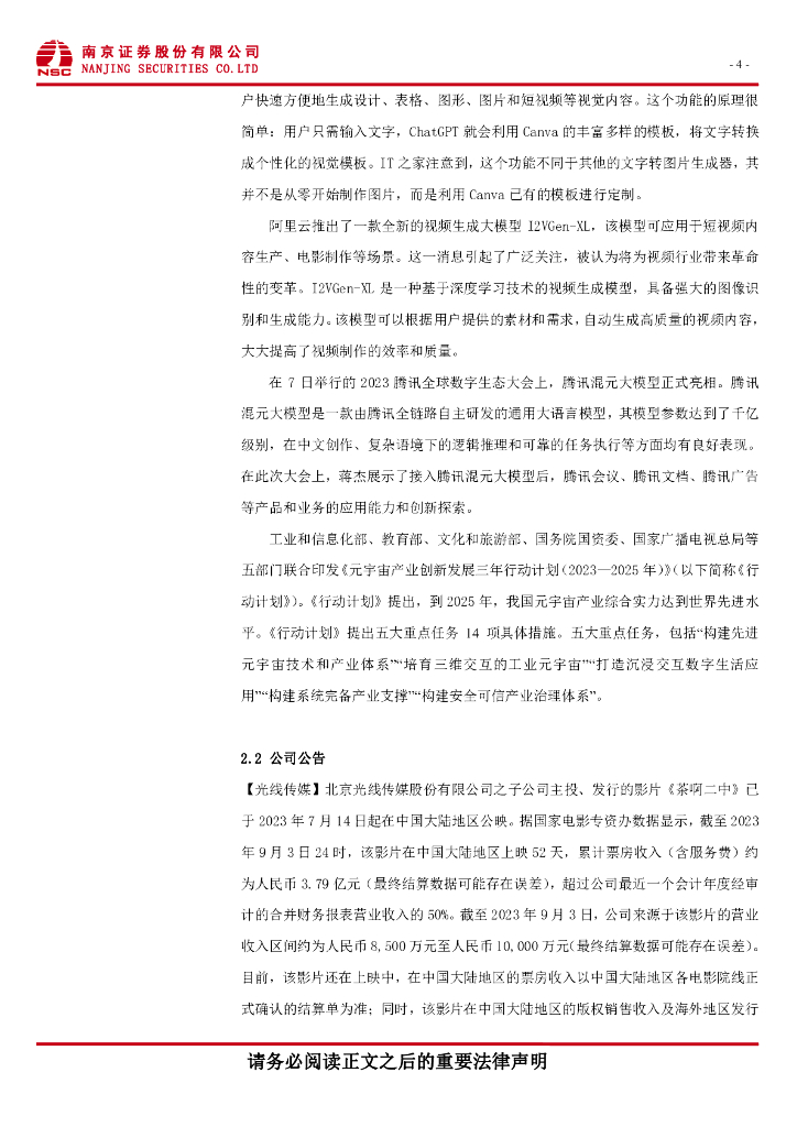 南京证券:传媒:腾讯发布混元大模型,关注中秋国庆档电影.pdf