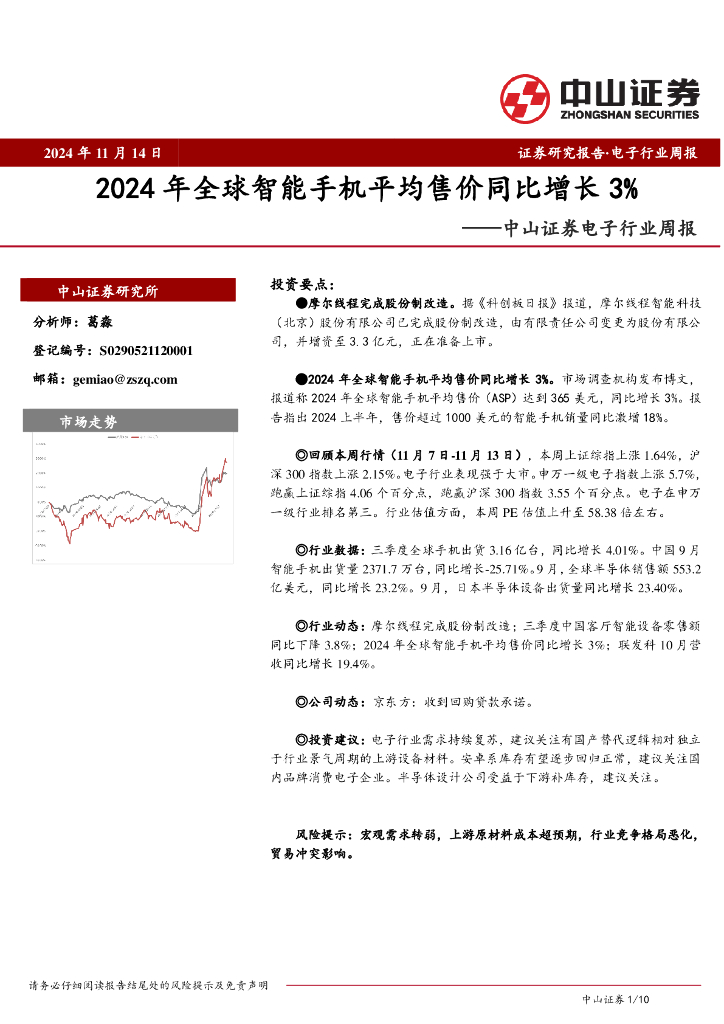 中山证券:电子行业周报:2024年全球智能手机平均售价同比增长3%.pdf