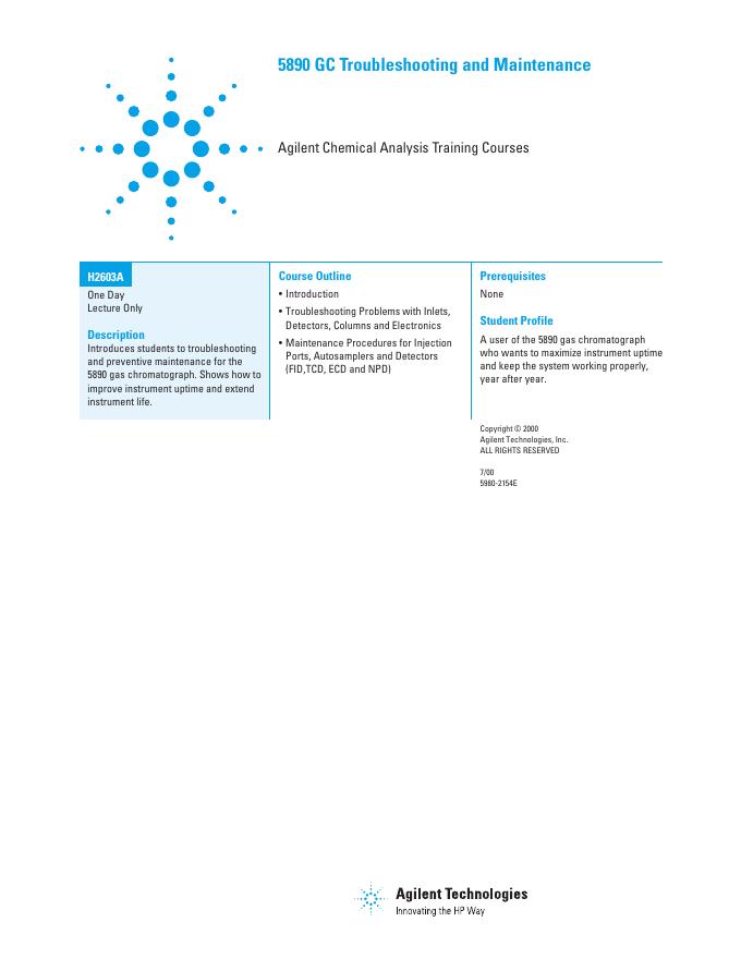 Agilent 5890 GC Troubleshooting and Maintenance (H2603A) 数据手册.pdf