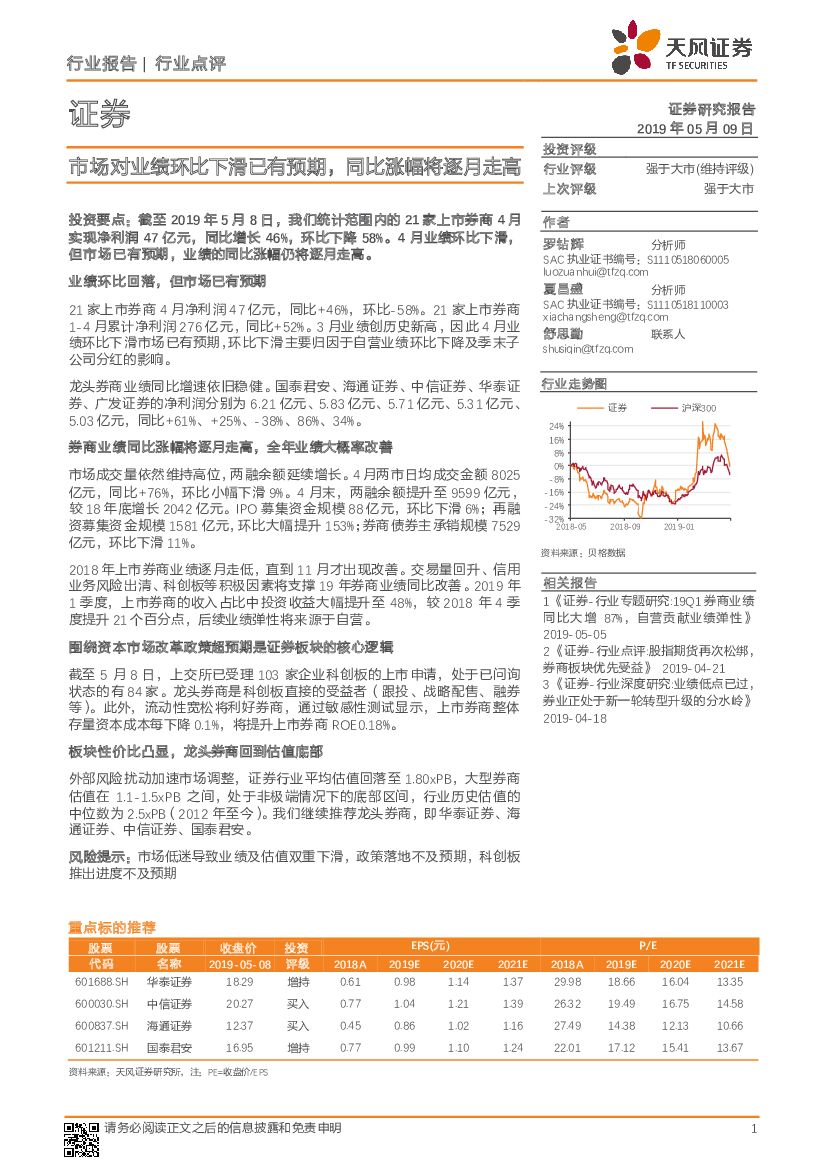 天风证券:证券行业点评:市场对业绩环比下滑已有预期,同比涨幅将逐月走高.pdf
