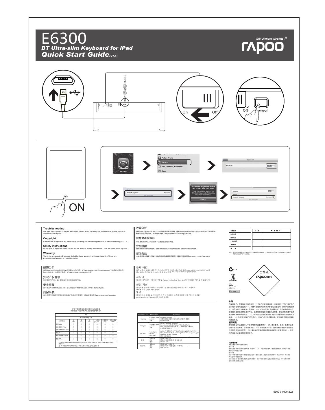 Rapoo E6300 BT超薄键盘快速入门指南(V1.1).pdf