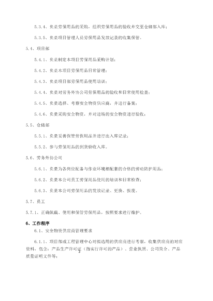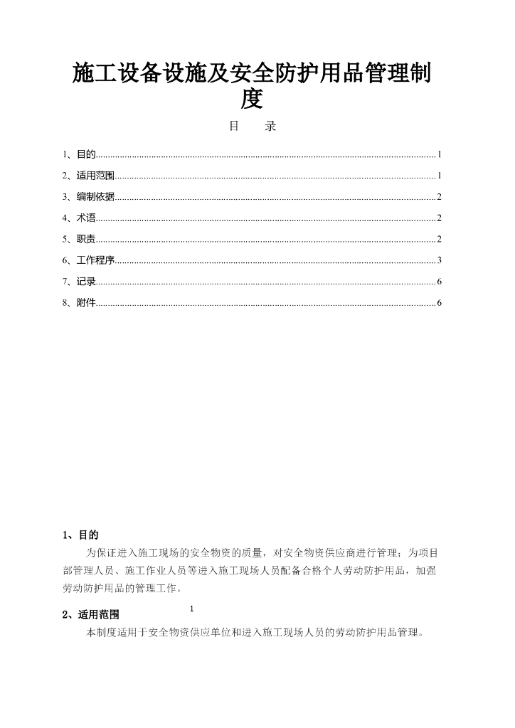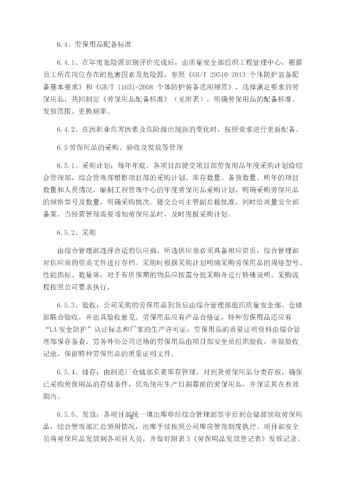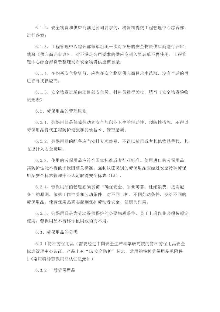 施工设备设施及安全防护用品管理制度(附劳保用品配备标准表).doc