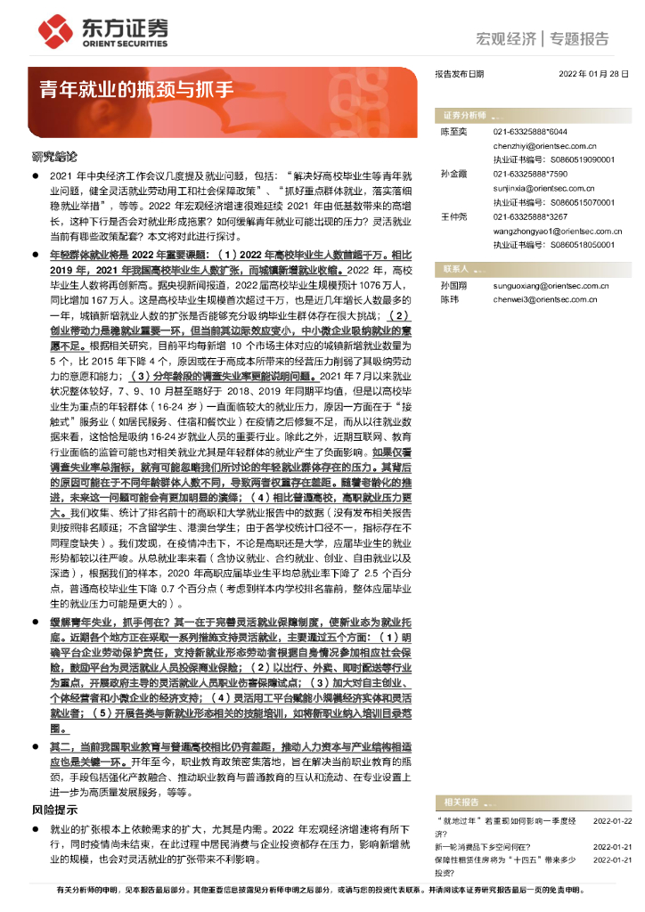 东方证券:宏观经济专题报告:青年就业的瓶颈与抓手.pdf