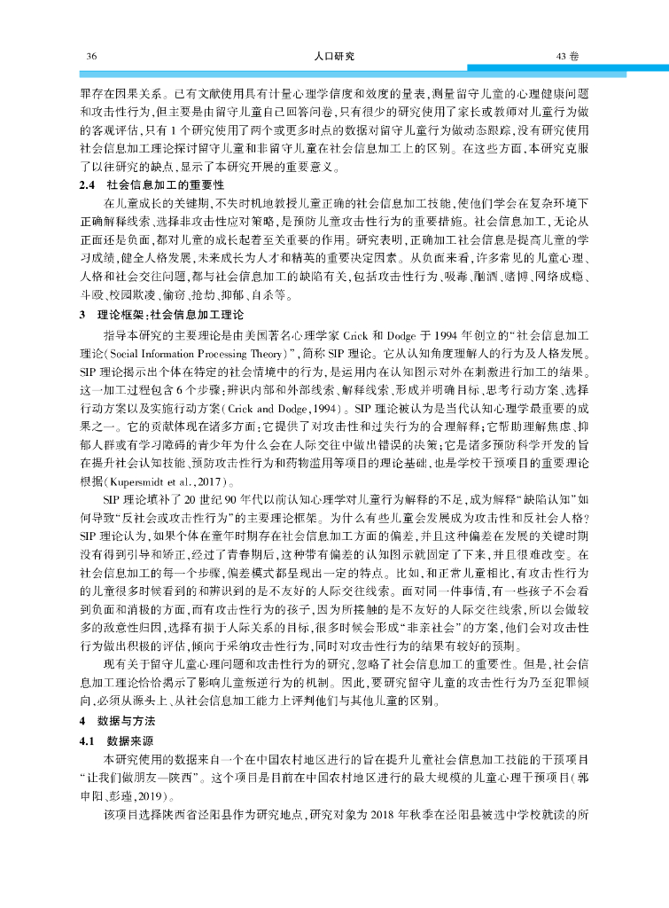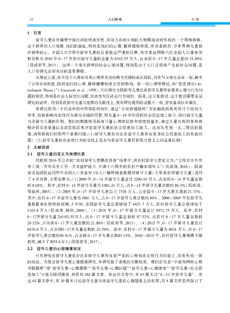 郭申阳:留守儿童的社会心理健康——来自陕西省泾阳县一个随机大样本调查的发现人口研究(2019年6期).pdf