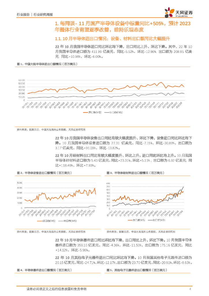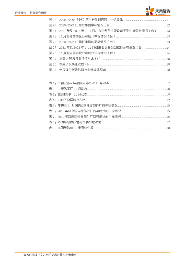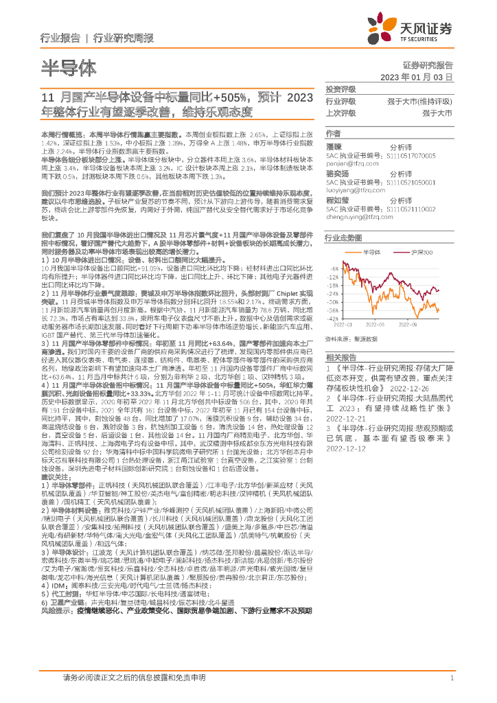 天风证券:半导体行业研究周报:11月国产半导体设备中标量同比+505%,预计2023年整体行业有望逐季改善,维持乐观态度.pdf