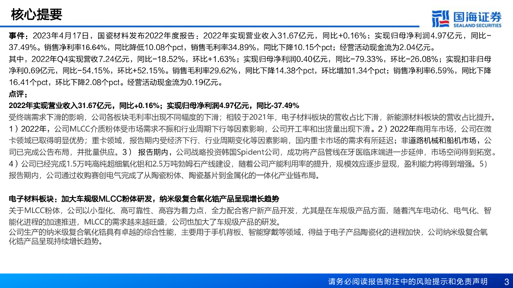 国海证券:国瓷材料(300285)-2022年报点评:Q4扣非归母净利环比改善,布局新能源、陶瓷基板、光模块相关产品.pdf