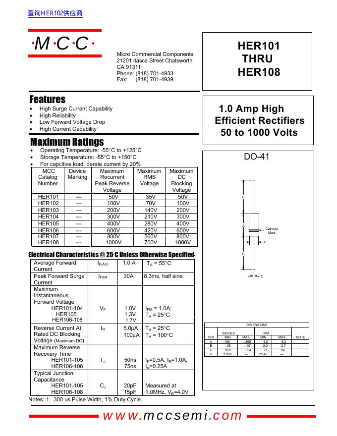 MCC HER101 THRU HER108 数据手册.pdf