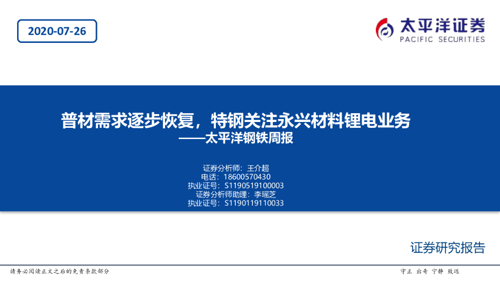 太平洋证券:钢铁周报:普材需求逐步恢复,特钢关注永兴材料锂电业务.pdf