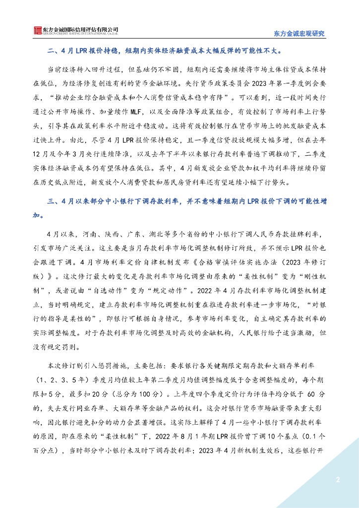 东方金诚:4月LPR报价不变,近期部分中小银行存款利率下调事出有因(2023年4月LPR报价点评).pdf